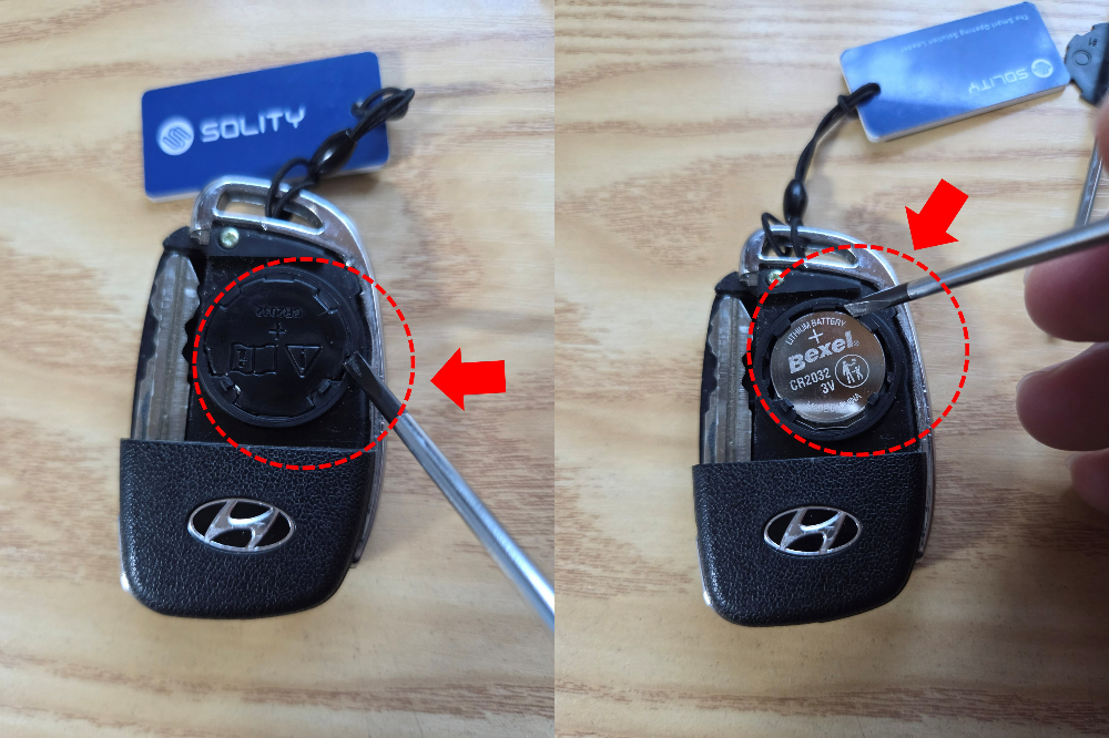 배터리 교체가 완료되면 자동차키의 버튼을 눌렀을 때 작은 LED에 빨간불이 들어오는지 확인하세요.문제가 없다면 차량 가까이 가서 리모콘키가 정상 작동 되는지도 확인하시구요.