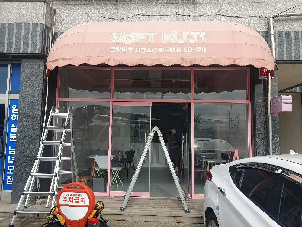 기존에 라운드형 고정어닝이 설치되어 있는 가게를 인수하셨는데요.