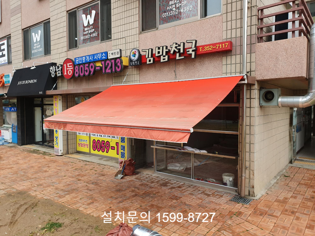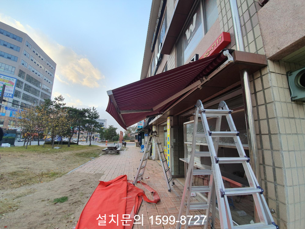오늘은 경기도 화성시 향남읍의 아파트 단지내 상가에서 진행한 수동접이식어닝 원단교체 시공사례를 소개해 드리겠습니다.