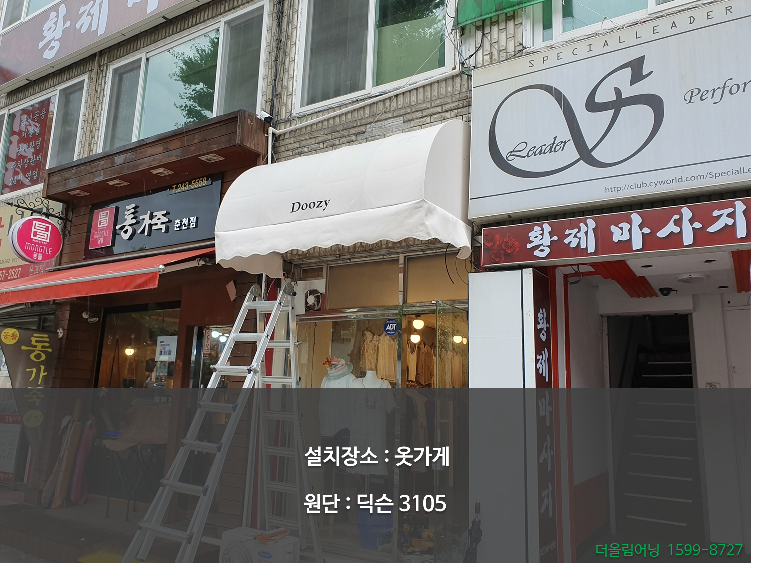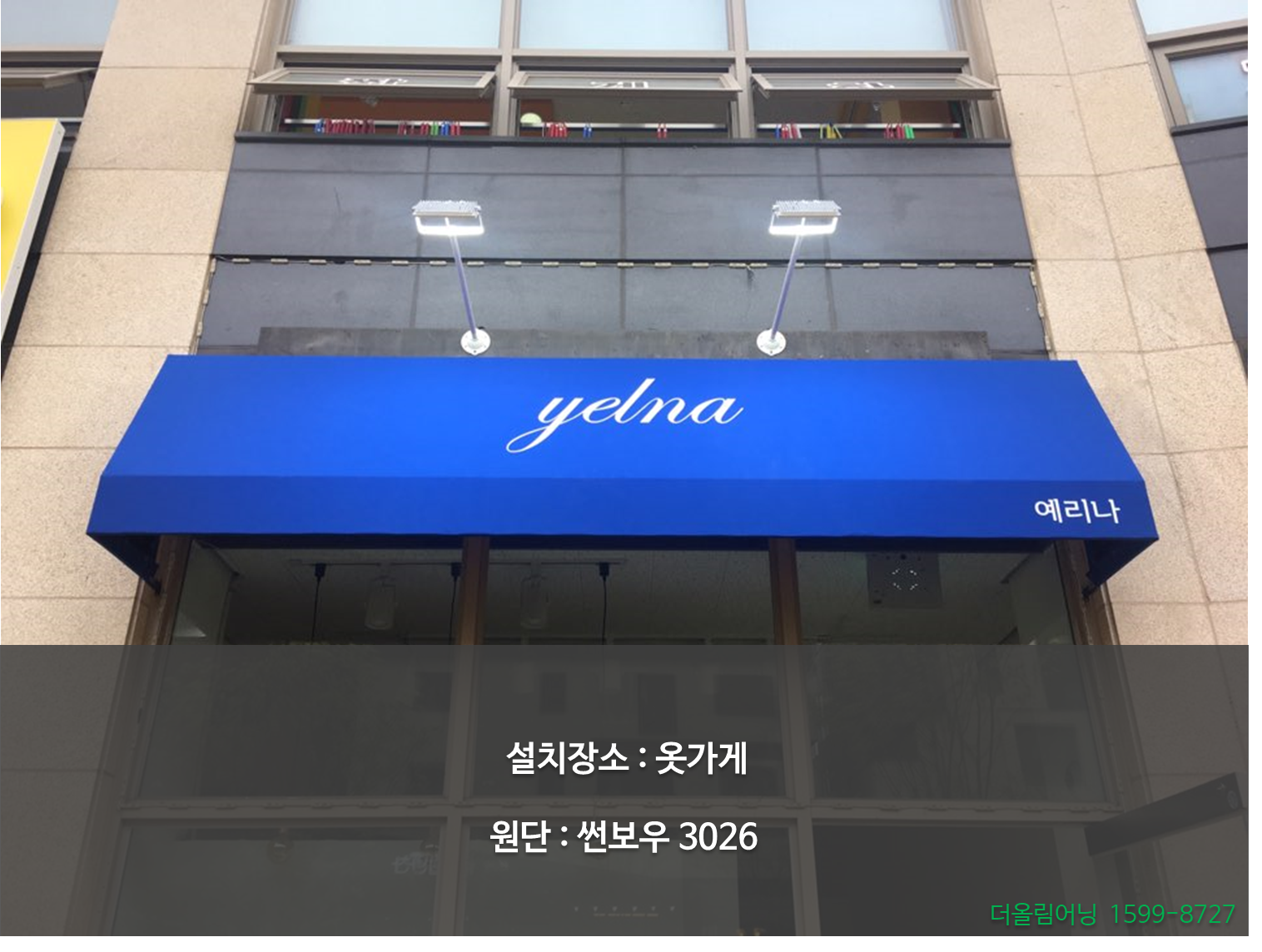 더올림어닝 | 김재상 | 경기도 화성시 동탄지성로 150-12 | 사업자 등록번호 : 680-37-00632 | TEL : 010-2858-1749 | Mail : kjs@theallim.co.kr | 통신판매신고번호 : 2019-화성동탄-0109호 | 사이버몰의 이용약관 바로가기