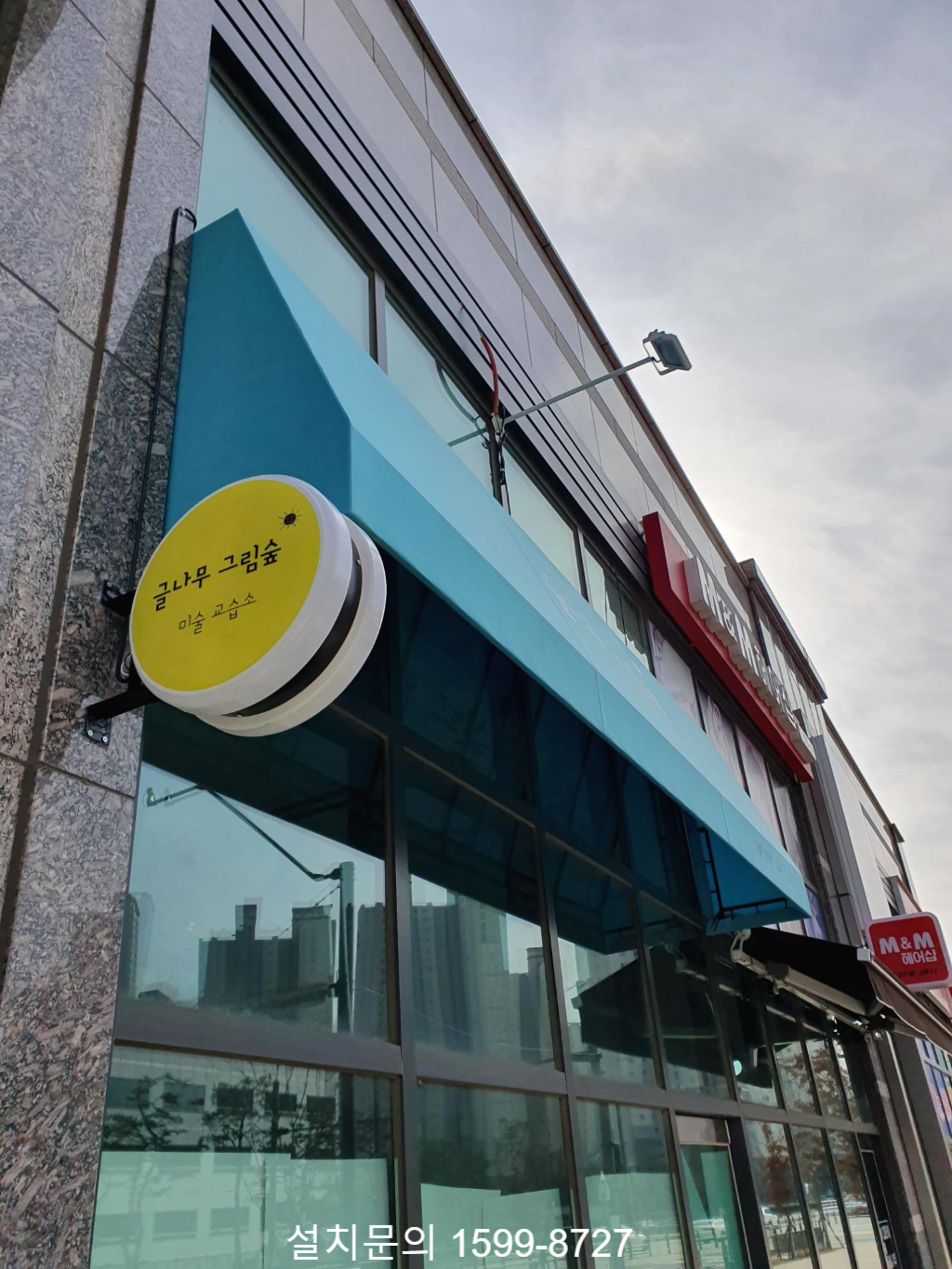 어닝간판을 시공하기 전 사진입니다. 미술학원이고요. 고정식어닝은 어닝과 간판용도를 겸하여 사용이 가능합니다. 고정식어닝의 전면에 로고나 상호를 크게 인쇄하고 어닝 위쪽에 조명을 설치할 경우 간판을 설치하는 것보다 저렴한 가격으로 설치가 가능합니다.