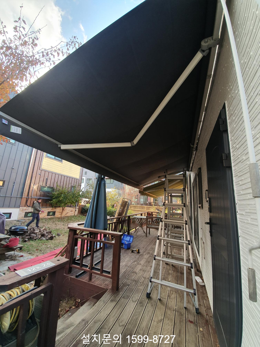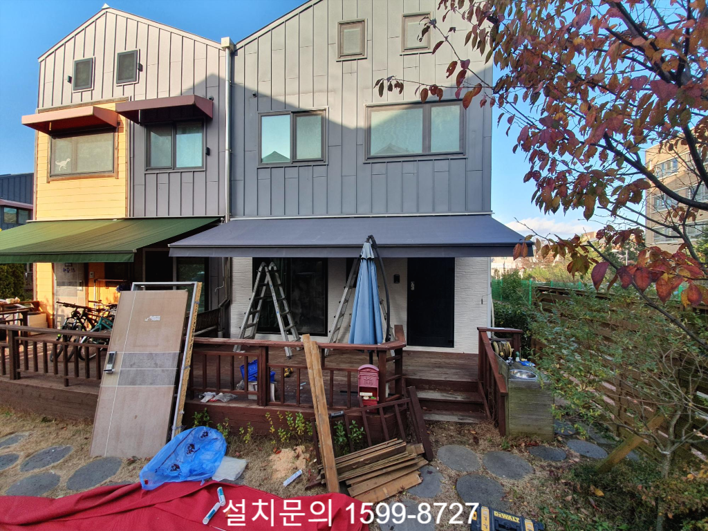 아이올라 타운하우스에서 진행한 마지막 작업입니다. 기존에 있던 어닝을 아예 폐기하고 새 접이식어닝을 제작해서 설치해 드렸습니다.