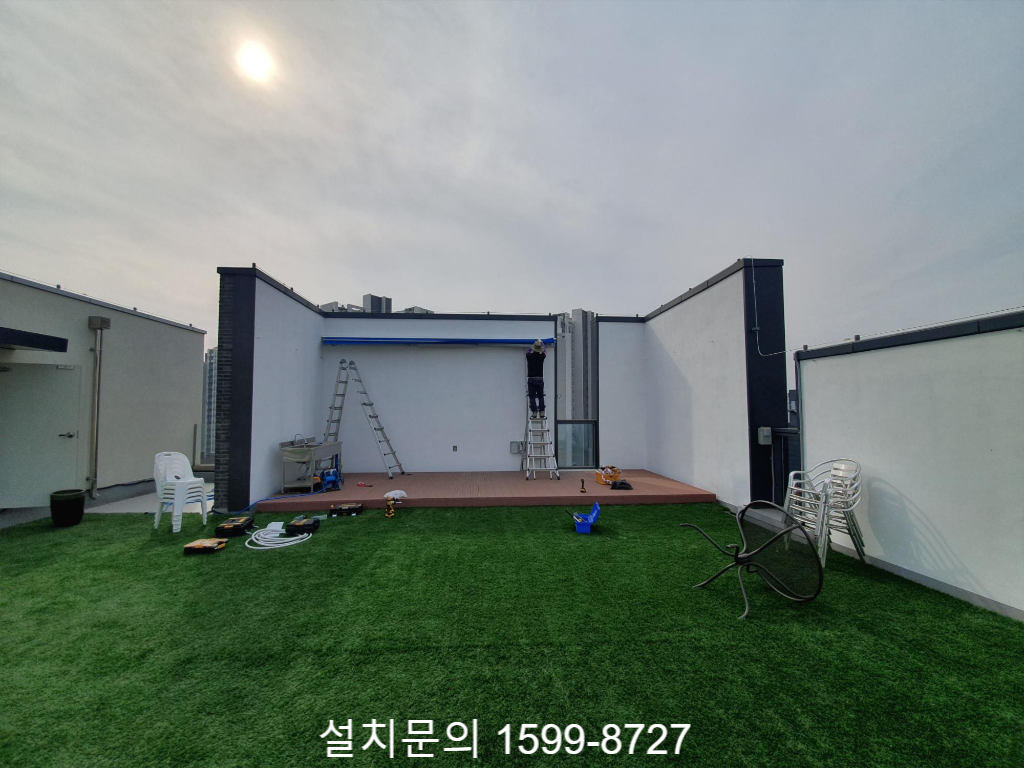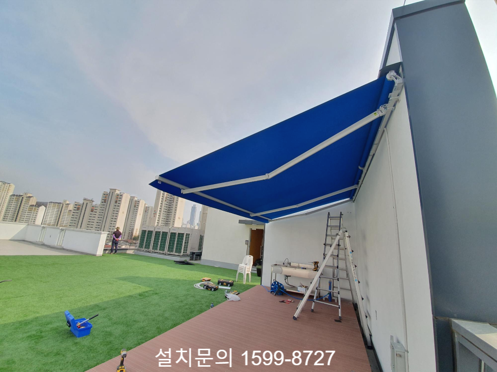 오늘은 경기도 화성시 동탄 능동의 회사옥상에 설치한 자동접이식어닝 설치사례를 소개해 드리겠습니다.