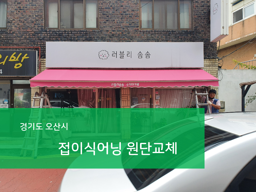 이상으로 경기도 오산시 상가에서 진행한 수동접이식어닝 원단교체 시공사례 소개를 마치겠습니다.