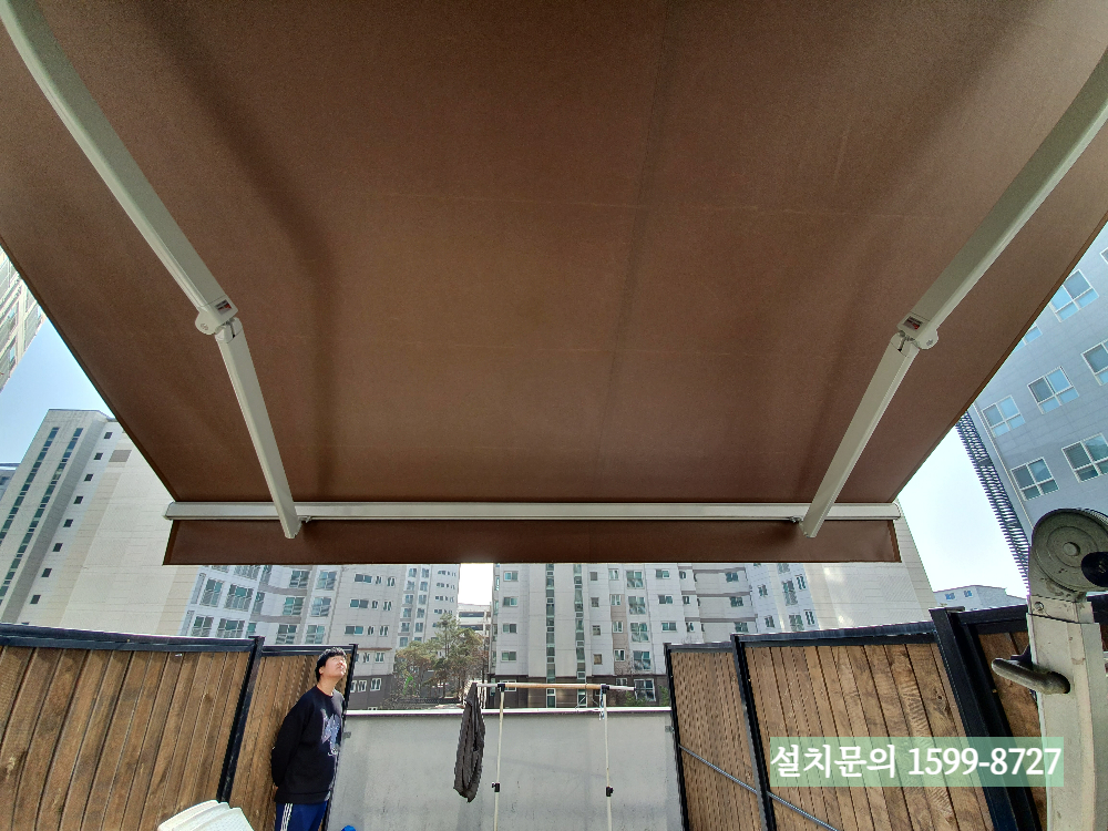 이상으로 경기도 화성시 병점동 오피스텔 건물 테라스에 설치한 수동접이식어닝 시공사례 소개를 마치겠습니다. 화성시 지역에서 접이식어닝 제작 및 설치관련하여 궁금하신 내용은 1599-8727로 전화주시면 친절히 상담해 드리겠습니다. 감사합니다.^^