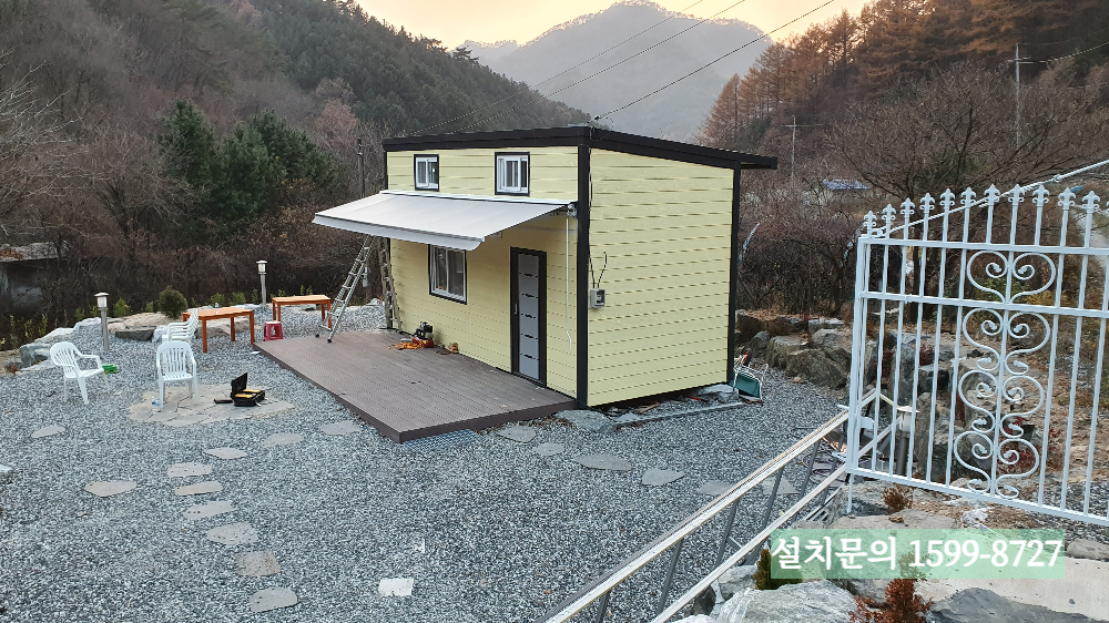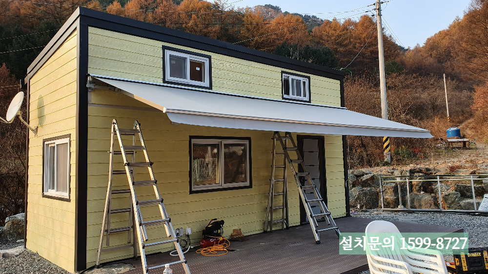 이상으로 이동식주택에 설치한 수동접이식어닝 시공사례 소개를 마치겠습니다. 접이식어닝 견적과 설치관련 문의전화는 1599-8727로 주시면 됩니다. 감사합니다.^^