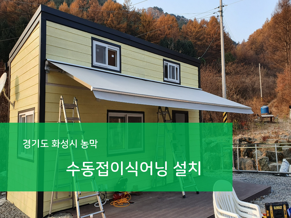 오늘은 이동식주택에 설치했던 수동접이식어닝 작업내용을 소개해 드리겠습니다.