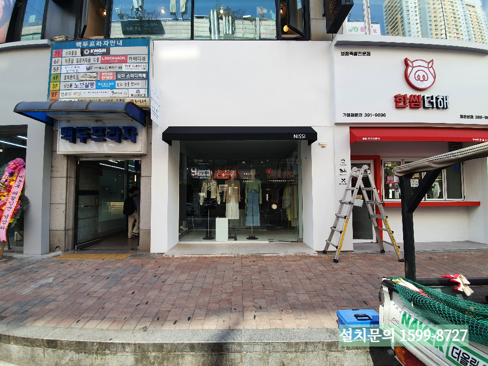오늘은 경기도 안양시 범계동 상가 1층 옷가게에 설치했던 고정식어닝 작업내용을 소개해 드리겠습니다.