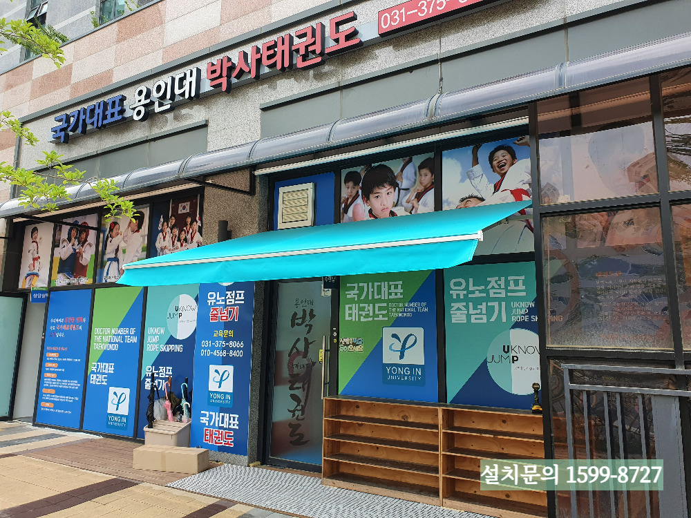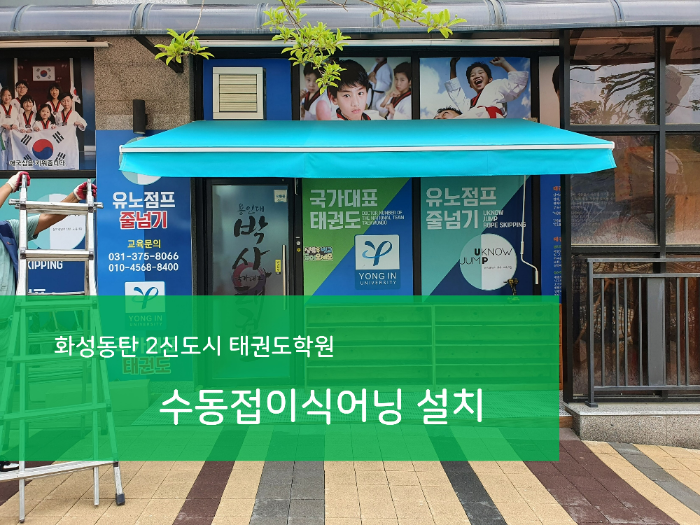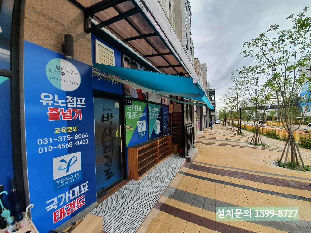 이상으로 경기도 화성시 동탄2신도시 태권도학원 출입문에 설치한 수동접이식어닝 시공사례 소개를 마치겠습니다. 화성동탄지역에서 접이식어닝 견적, 설치관련하여 궁금하신 내용이 있으면 1599-8727로 전화주시면 친절하게 상담해 드리겠습니다. 감사합니다^^.