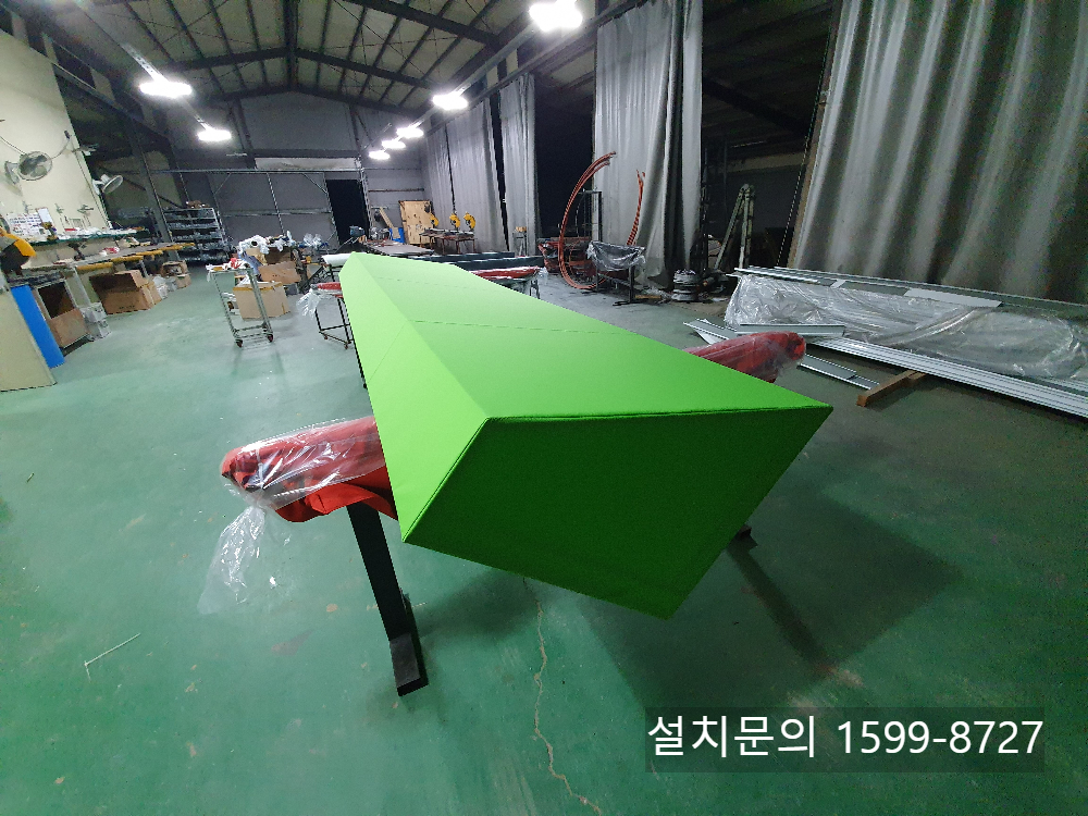 새로 제작한 원단을 입혀 놓으니 파손됐던 흔적이 보이지 않습니다. 이제 날이 밝으면 현장으로 이동해 고정어닝을 다시 설치하면 됩니다.