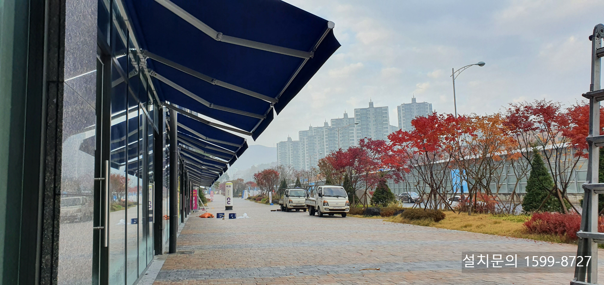오늘은 경기도 용인시 동백 두산위브더제니스 아파트 상가에 설치한 수동접이식어닝 시공사례를 소개해 드리겠습니다.