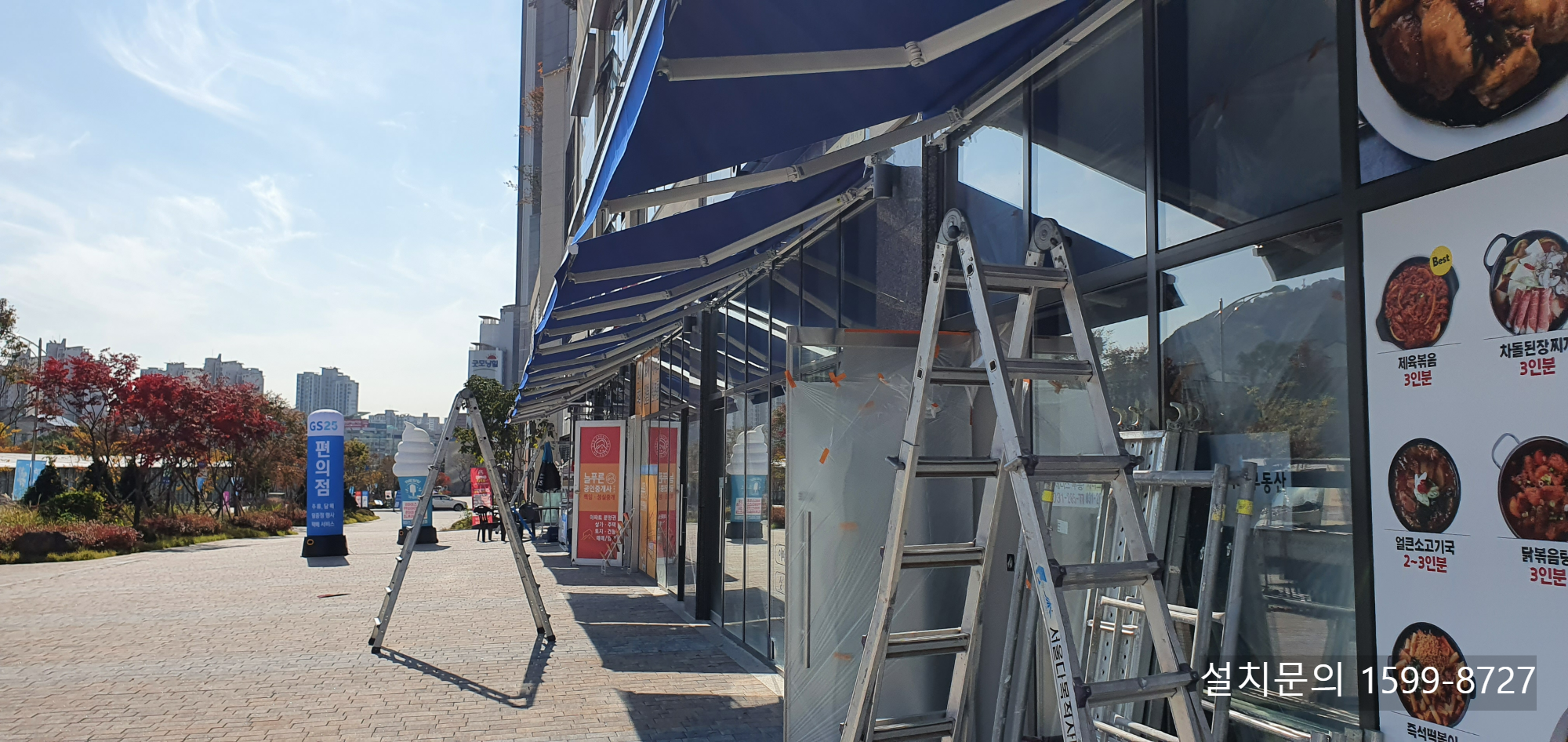이상으로 경기도 용인시 동백동 아파트 상가에 설치한 수동접이식어닝 시공사례 소개를 마치겠습니다. 접이식어닝 설치, 비용, 견적 관련 궁금한 내용은 1599-8727로 전화주시면 친절히 상담해 드리겠습니다. 감사합니다.^^