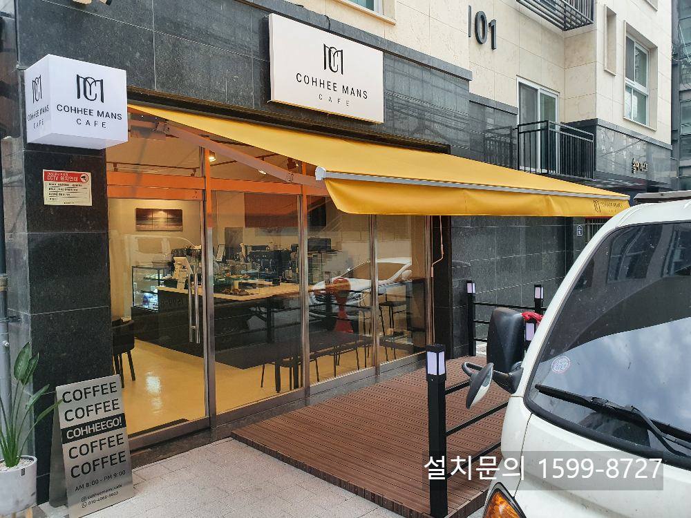 이상으로 경기도 화성시 봉담읍 수원대학교 인근 카페에 설치한 수동접이식어닝 시공사례를 소개해 드렸습니다. 접이식어닝 설치,견적 관련 필요한 내용이 있으면 1599-8727로 전화주시면 친절히 상담해 드리겠습니다. 감사합니다.