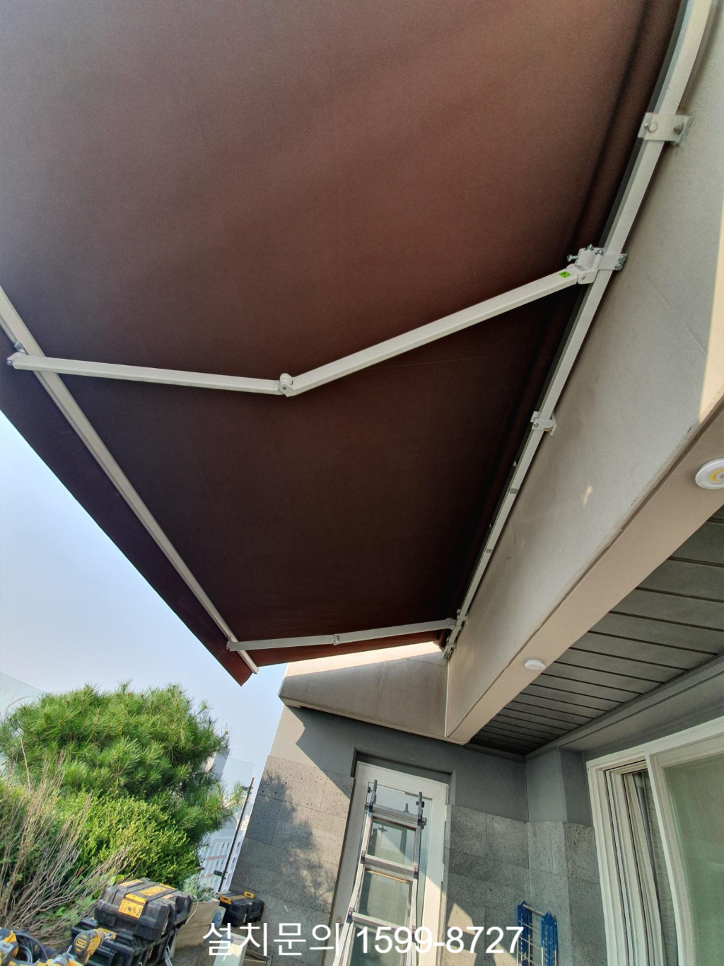 이상으로 경기도 화성시 동탄2신도시 아파트 옥상층 테라스에서 진행한 자동접이식어닝 철거, 설치, 원단(레이스)교체 시공사례 소개를 마치겠습니다. 어닝설치관련 궁금하신 사항은 언제든지 연락주시면 친절하게 상담해 드리겠습니다. 감사합니다.