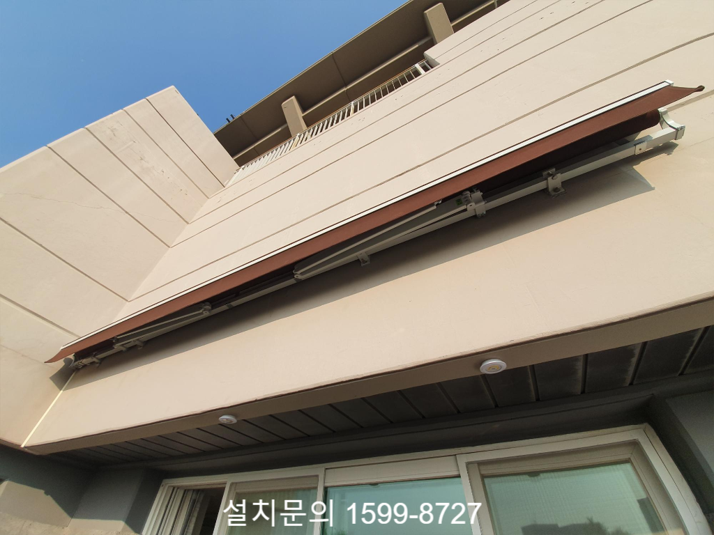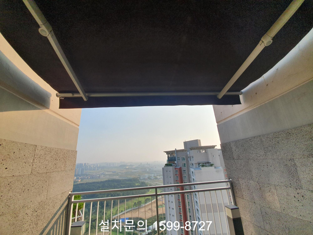 오늘은 경기도 화성시 동탄2신도시의 아파트 옥상층 테라스에 설치한 자동접이식어닝 시공사례를 소개해 드리겠습니다.
