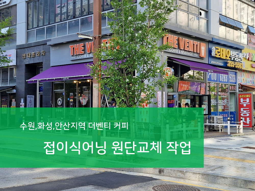 오늘은 경기도 화성,안산,수원지역에 있는 더벤티커피 전문점에서 작업한 접이식어닝 원단교체 사례를 소개해 드리겠습니다.