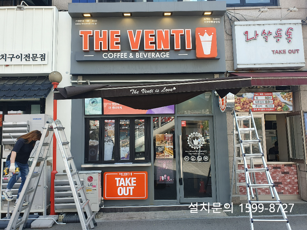 오늘은 경기도 화성,안산,수원지역에 있는 더벤티커피 전문점에서 작업한 접이식어닝 원단교체 사례를 소개해 드리겠습니다.