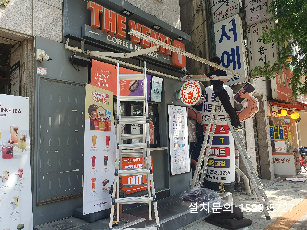 이상으로 화성,안산,수원지역 더벤티커피 접이식어닝 원단교체 작업내용 포스팅을 마치겠습니다. 화성,안산,수원지역에서 접이식어닝 설치, 천갈이(원단교체) 작업이 필요하시면 1599-8727 로 전화 주세요.감사합니다.^^