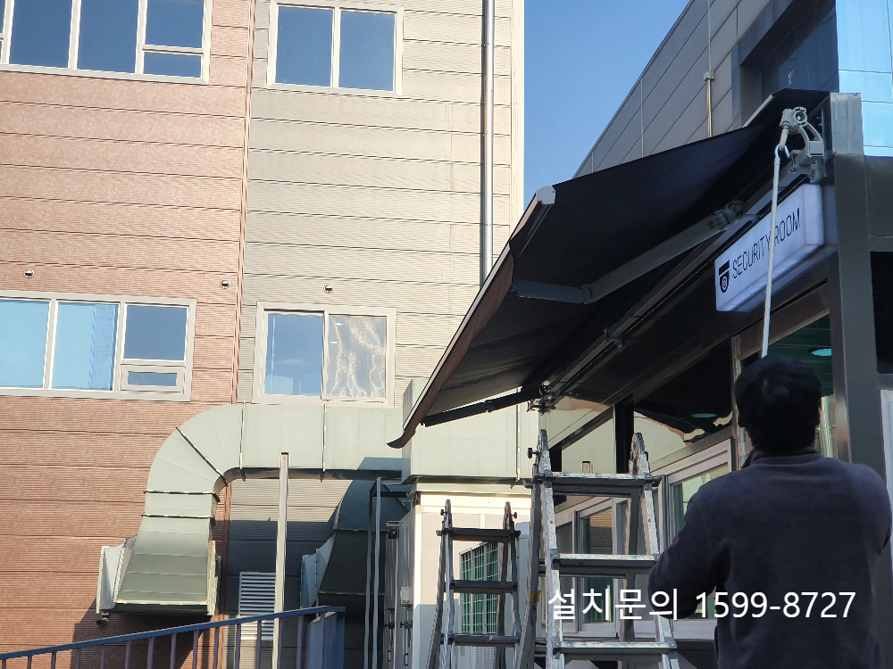 오늘은 화성시 남양읍에 위치한 회사정문 보안실에 설치한 수동접이식어닝 시공사례를 소개해 드리겠습니다.