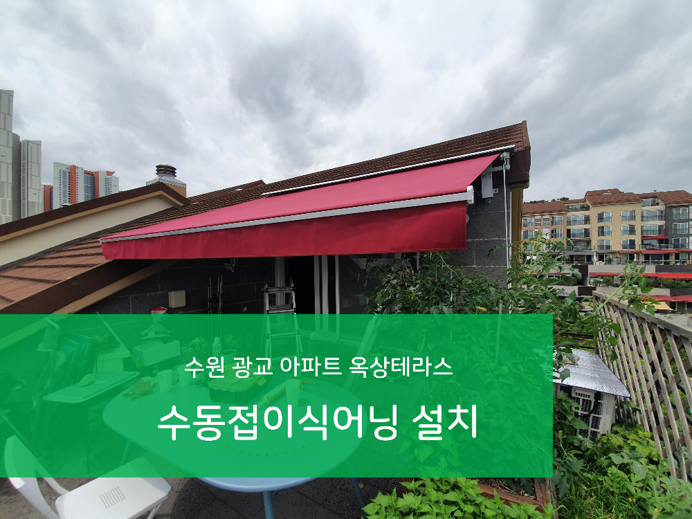 오늘은 경기도 수원시 광교 아파트 옥상 테라스에 설치했던 수동접이식어닝 작업내용을 소개해 드리겠습니다.