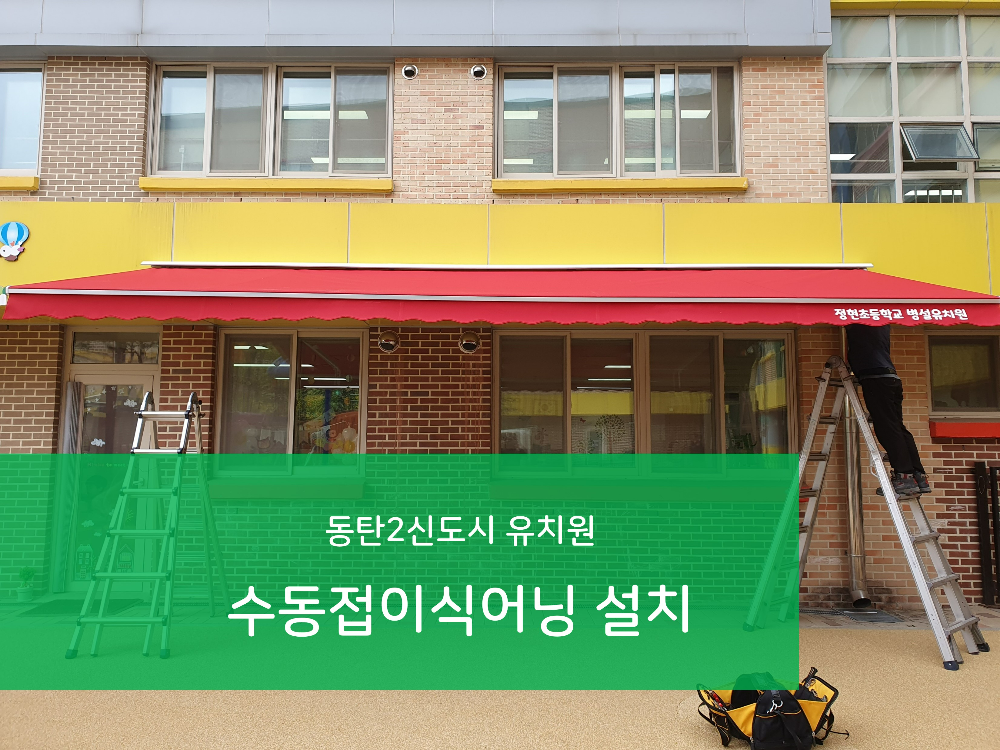 오늘은 동탄2신도시 유치원에 설치한 수동접이식어닝 시공사례를 소개해 드리겠습니다.