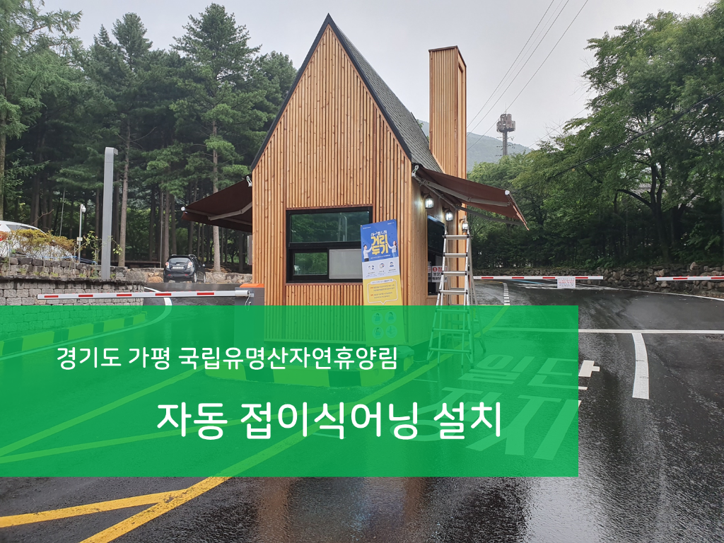 오늘은 경기도 가평 '국립유명산자연휴양림' 입구 매표소에 설치한 자동접이식어닝 시공사례를 소개해 드리겠습니다.