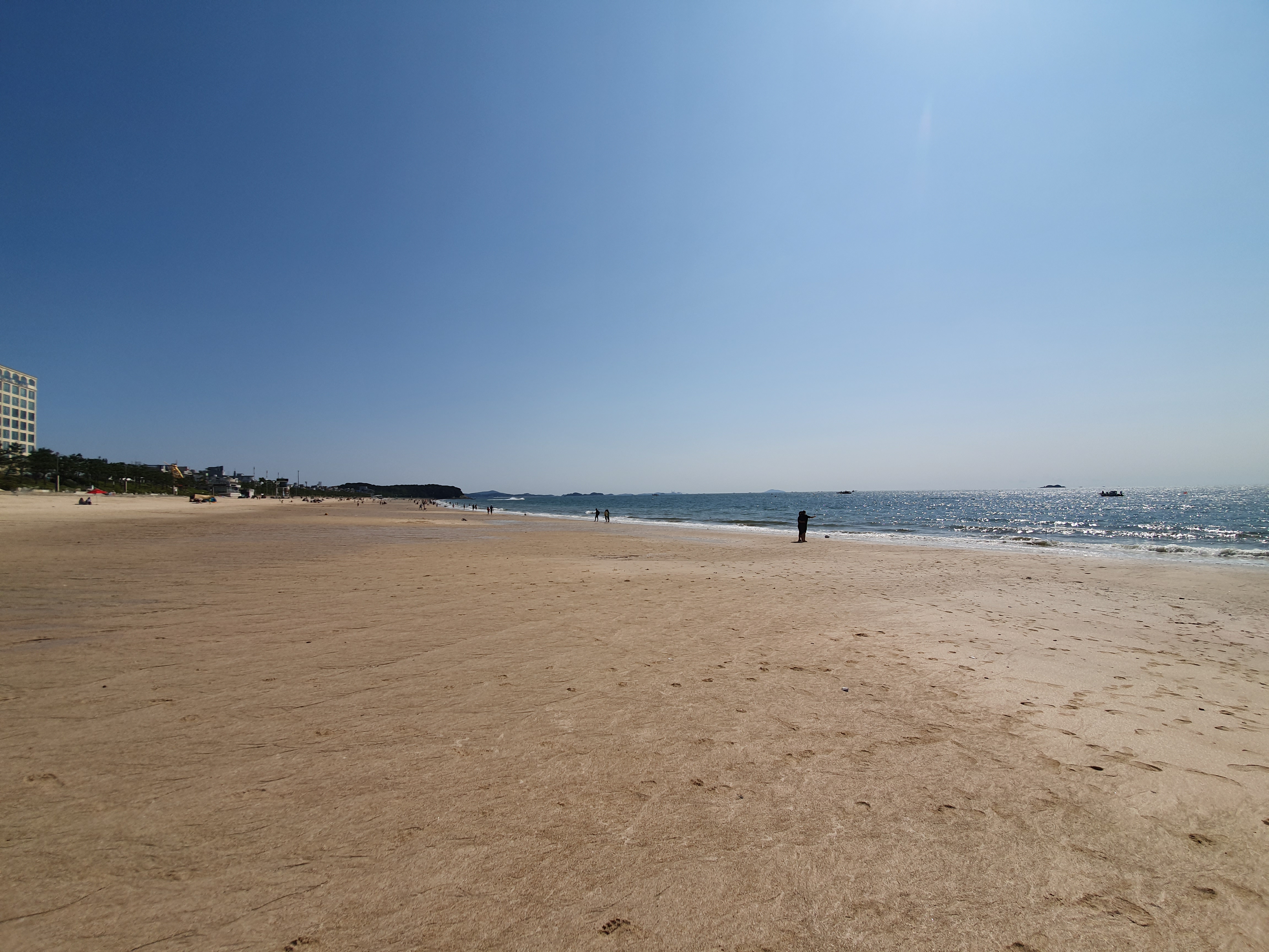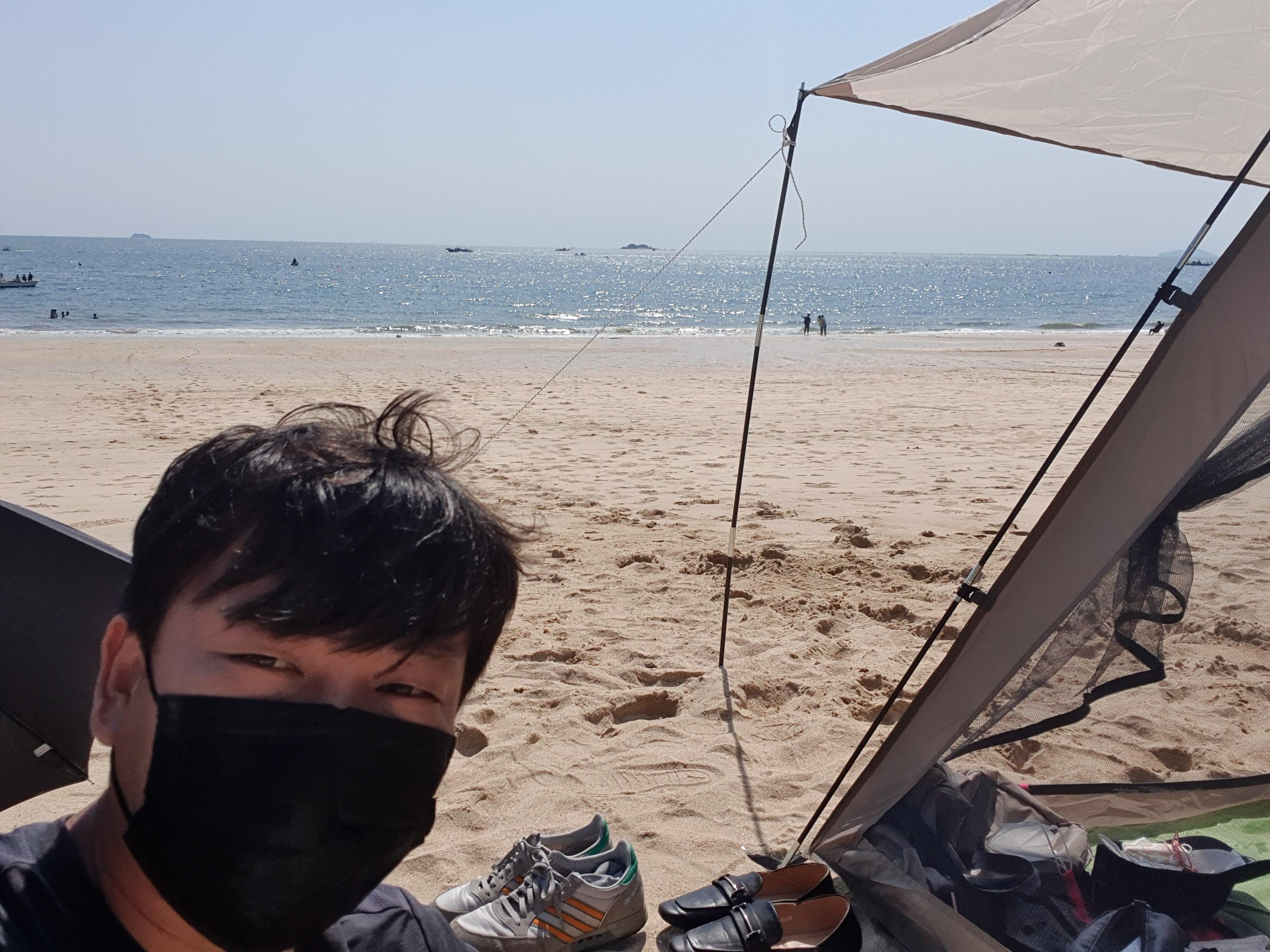 해장라면, 바지락칼국수, 파전과 함께 소주(낮술)를 먹고 모래사장에서 한동안 평화로운 시간을 보내다가 잔잔한 파도가 밀려오는 바다를 찍어 봤습니다.