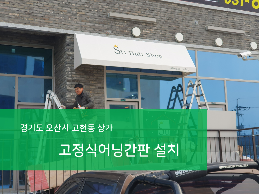 이상으로 경기도 오산시 고현동 헤어샾에 설치한 고정식어닝간판 시공사례 소개를 마치겠습니다.