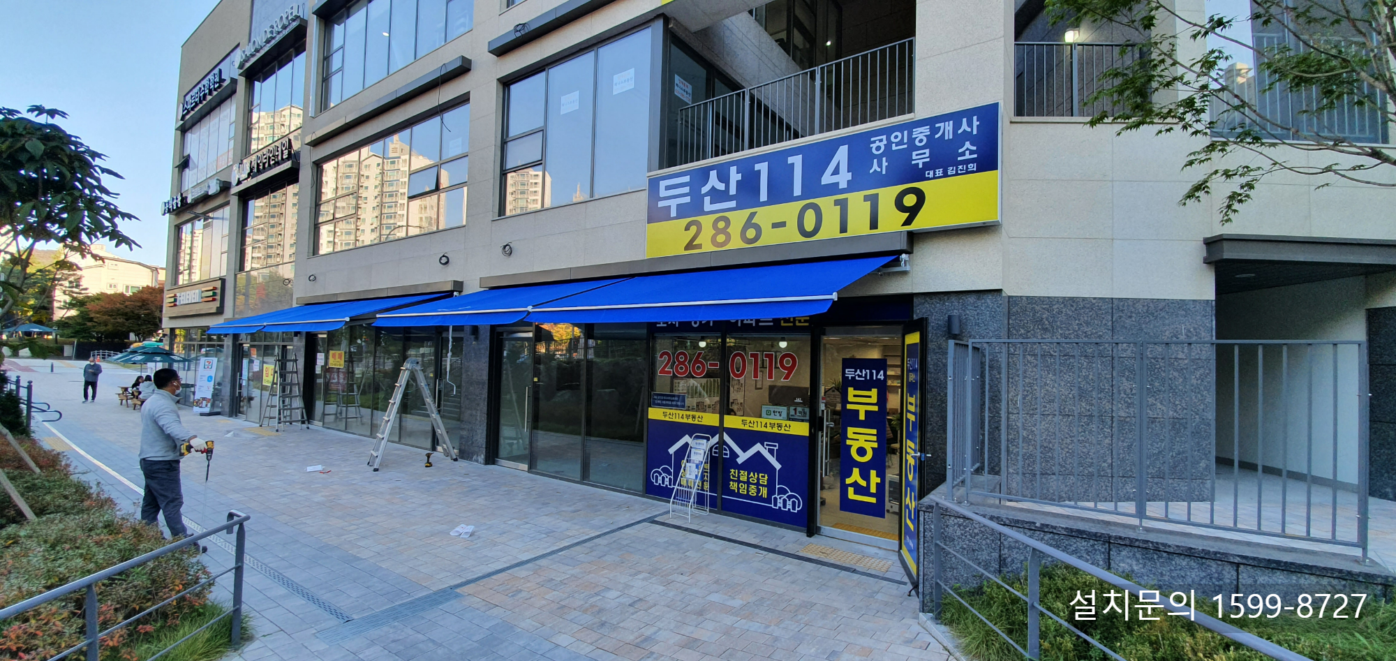 오늘은 경기도 용인시 동백 두산위브더제니스 아파트 상가에 설치한 수동접이식어닝 시공사례를 소개해 드리겠습니다.