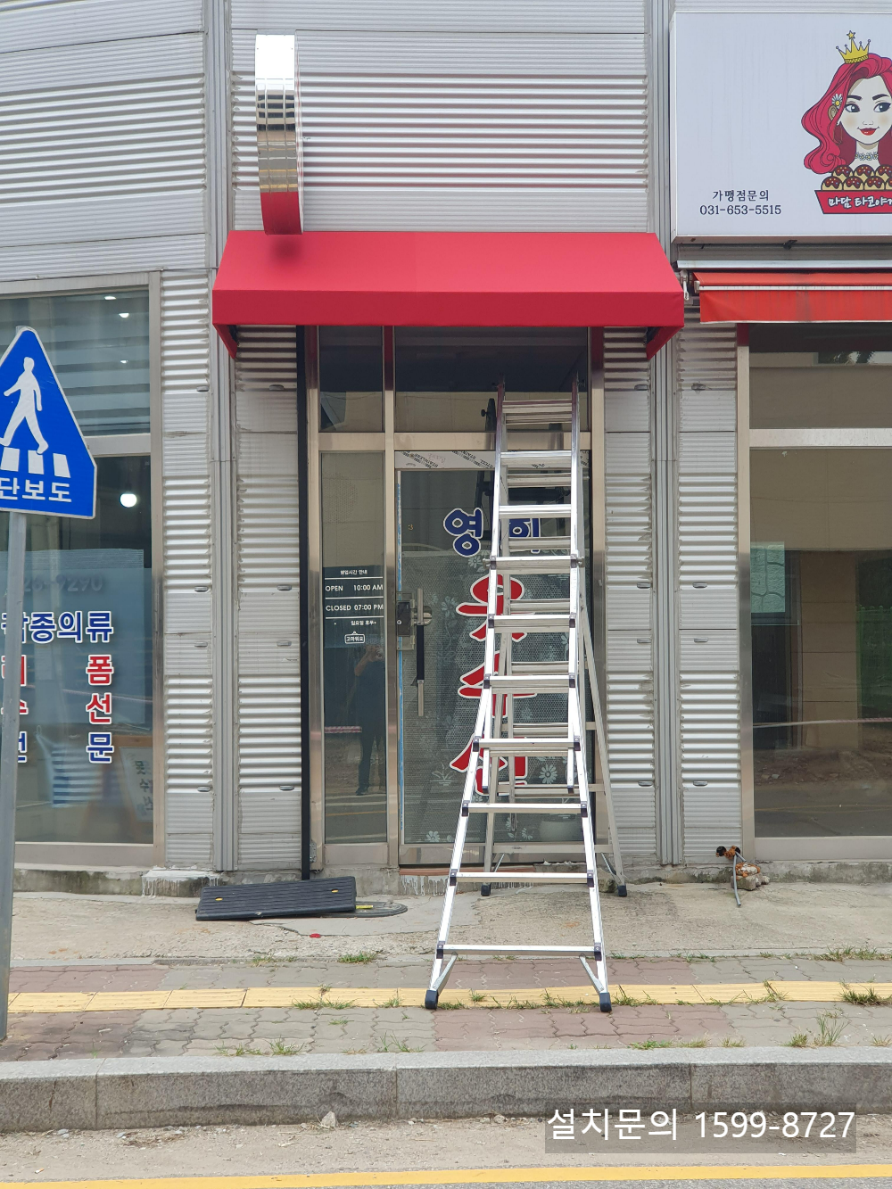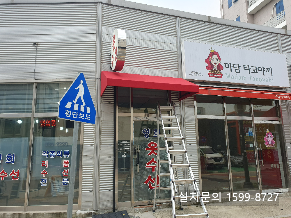 경기도 화성시 병점동 옷수선 가게 출입구에 설치한 고정식어닝 작업내용이었습니다. 고정식어닝 제작,설치관련 비용,견적 등 상담이 필요하시면 1599-8727로 전화주세요. 감사합니다.^^